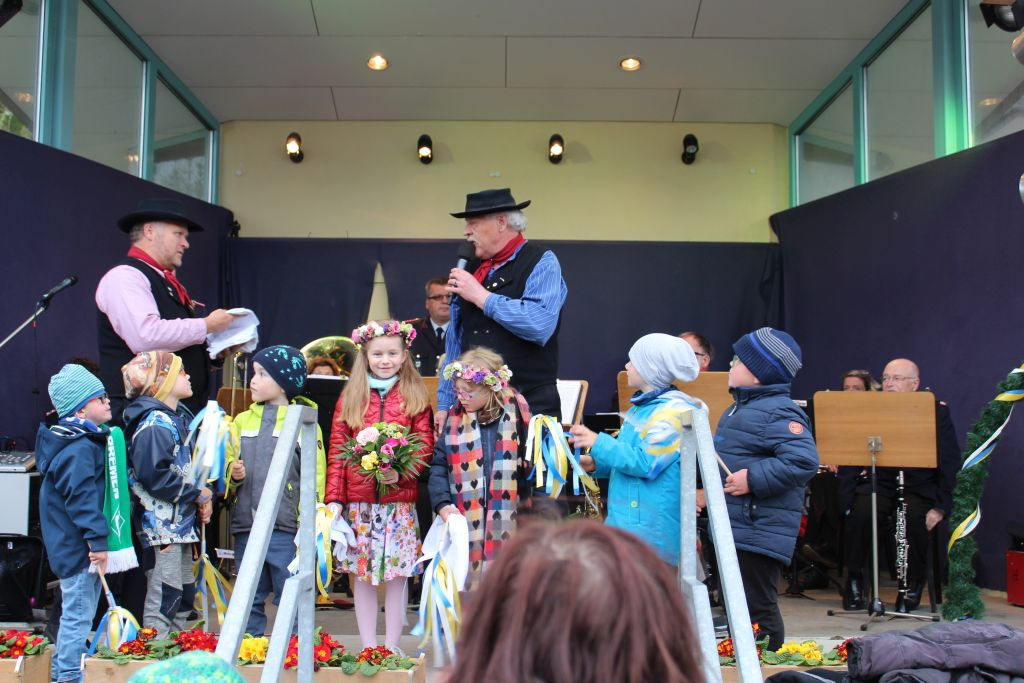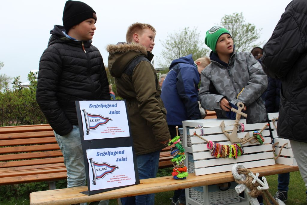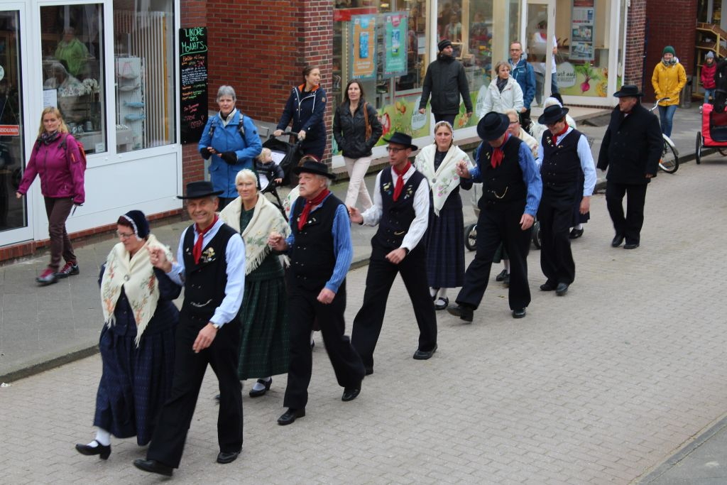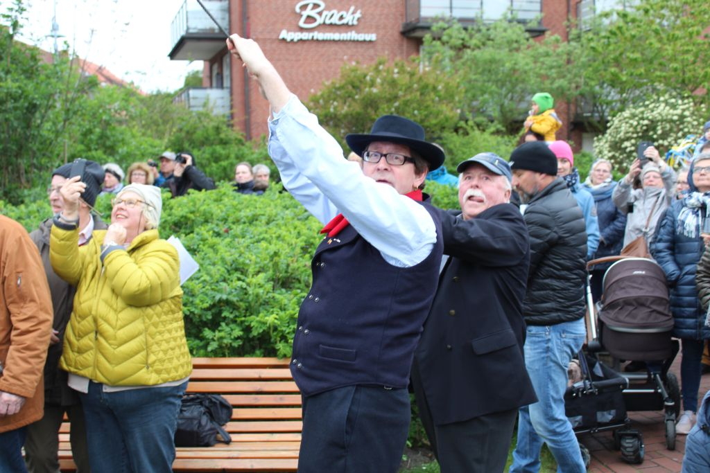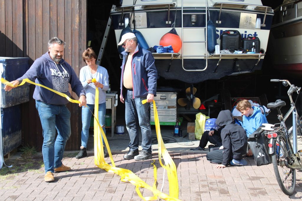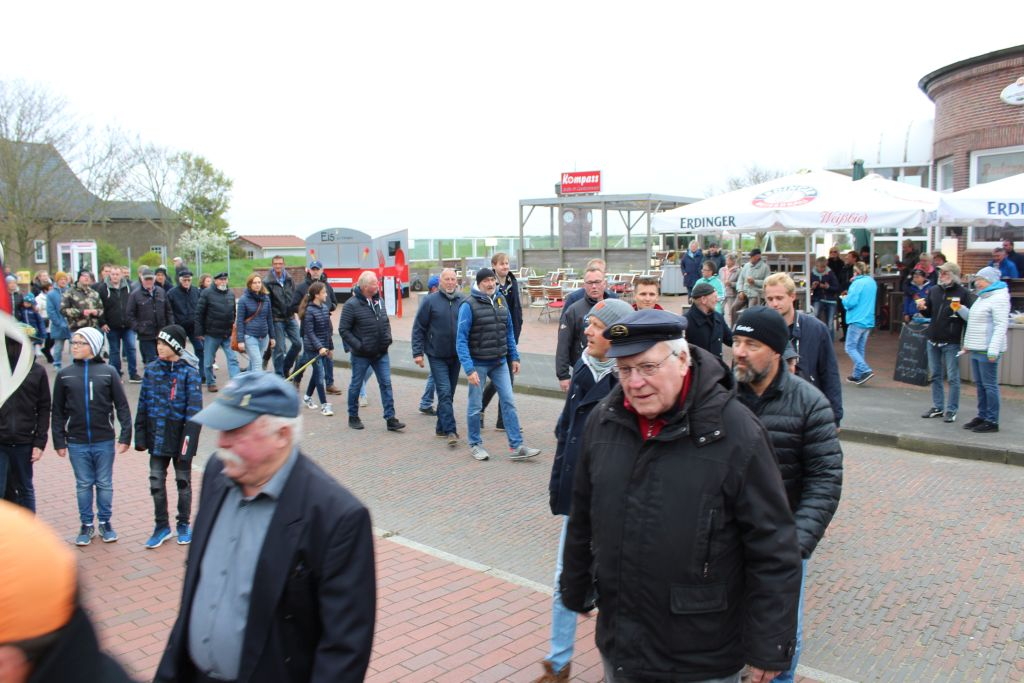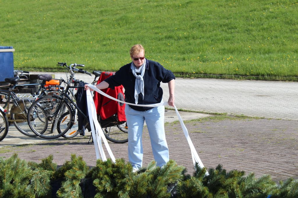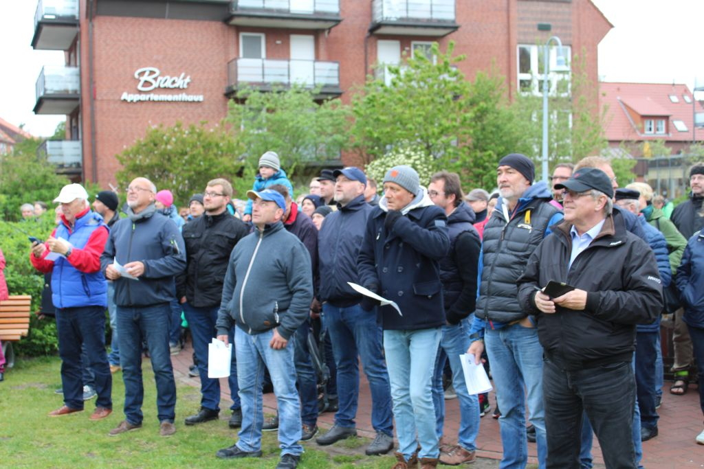 Zu den Aufgaben gehört die Vorbereitung und das Schmücken des Baumes, das Aufstellen, die Bewachung in der Nacht vom 30. April bis zum 1. Mai und das Abbauen am Monatsende. SKJ-Vorsitzender Olaf Weers freute sich, dass die Beteiligung der Mitglieder überall sehr stark und mehr als ausreichend war. Schon zum Schmücken am Bootshaus kamen bei strahlendem Sommerwetter sehr viele Wassersportler, Ehefrauen, Jugendliche und Kinder. Der Aufstellung voran ging ein Umzug durch das Dort, hier nahmen alleine 62 SKJ-Mitglieder teil, ebenso zahlreiche Insulaner, der Kindergarten „Schwalbennest“, die Volkstanz- und Trachtengruppe „Juister Hupfdohlen“ vom Heimatverein, vorneweg Thomas Fisser vom Shanty-Chor (aber auch SKJ-Mitglied) mit seinem Akkordeon. Es waren aber noch mehr Mitglieder aktiv, diese waren schon auf dem Kurplatz am Grill- oder Bierstand sowie als Musiker in der Konzertmuschel. Dort war nämlich der Musikzug der Freiwilligen Feuerwehr Juist unter der Leitung von Stabführer Michael Bockelmann (ebenfalls SKJ-Mitglied) mit bekannten Mailiedern dabei. Beim Aufstellen des Baumes gab es einige Helfer vom Heimatverein, die in jedem Jahr dabei sind und genau wissen, wie man den Baum aufstellt und gegen Umfallen sichert.