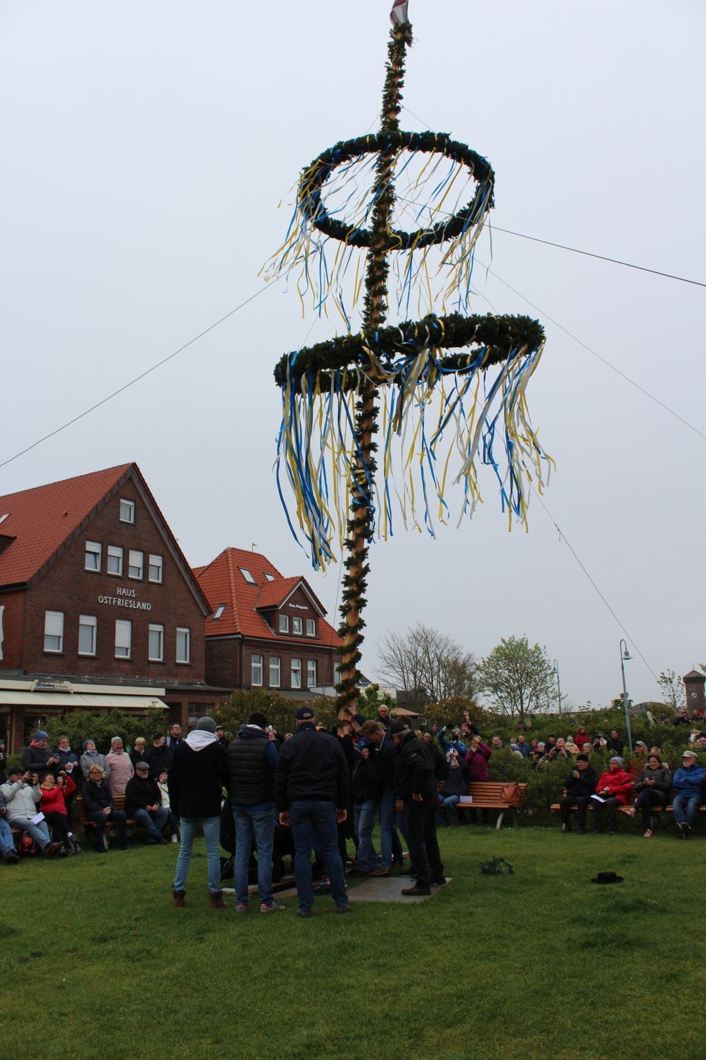 Turnusgemäß war der Segelklub Juist in diesem Jahr dran, sich um den Maibaum auf Juist zu kümmern. Die Aufstellung von Maibäumen mit den entsprechenden Ritualen (Maibaumtänze und Mailiedersingen, Bewachung, gegenseitiges Klauen usw.) ist in Ostfriesland eine alte Tradition, die auch auf Juist gepflegt wird. Die Federführung obliegt beim Heimatverein Juist, hier führt „Maibaumpräsidentin“ Heike Peters genau Buch darüber, welcher Verein dran ist und informiert diesen rechtzeitig. Rund alle sechs Jahre ist ein Verein an der Reihe, kleinere und nicht so mitgliederstarke Gruppen übernehmen den Baum auch gemeinsam (z. B. Ortsverein Juist vom DRK und die Seenotretter auf Juist), die großen Vereine und Organisationen, die ebenfalls regelmäßig an der Reihe sind, sind unter anderem die Freiwillige Feuerwehr, der Heimatverein mit seinen Untergruppen, der TSV Juist oder der Schützenverein.